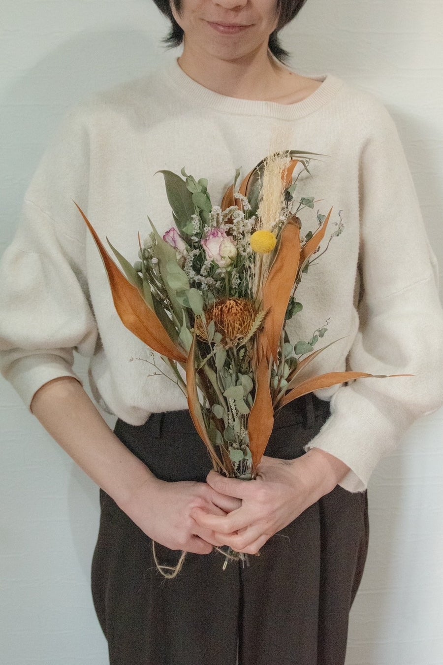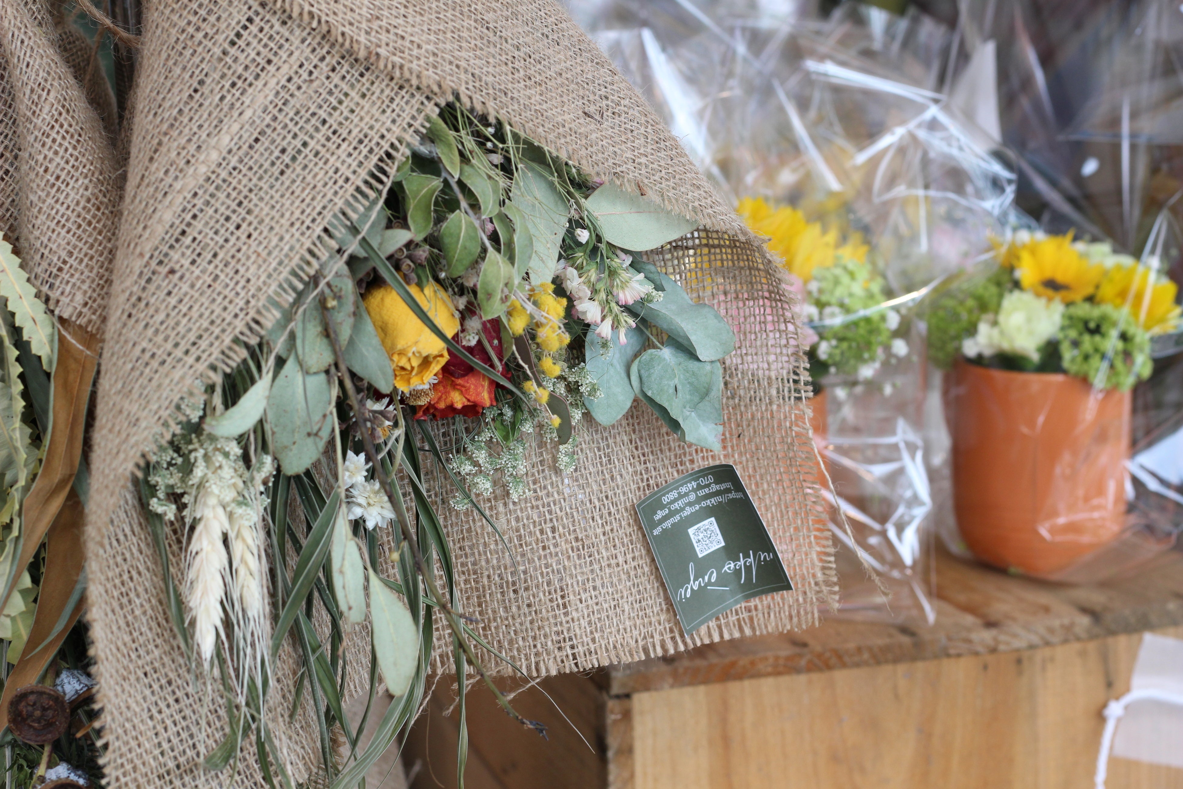 お花生産者の日光園藝さんによる、自家製ドライフラワーをふんだんに使用したスワッグ作り体験。丁寧に教えてもらえるから、初めての方でも安心です。お花栽培についての苦労や、こだわりポイントなども聞けちゃう、あぜみちならではの体験ワークショップ。