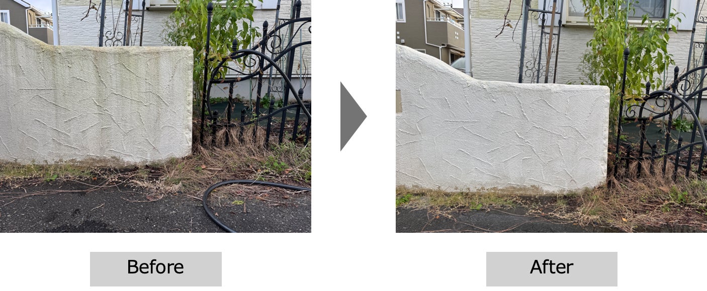 表面の細かな凹凸(外壁や外構に多いリシン仕上げやスタッコ仕上げなど)に入り込んだ汚れや、頑固な藻・コケにも対応。
