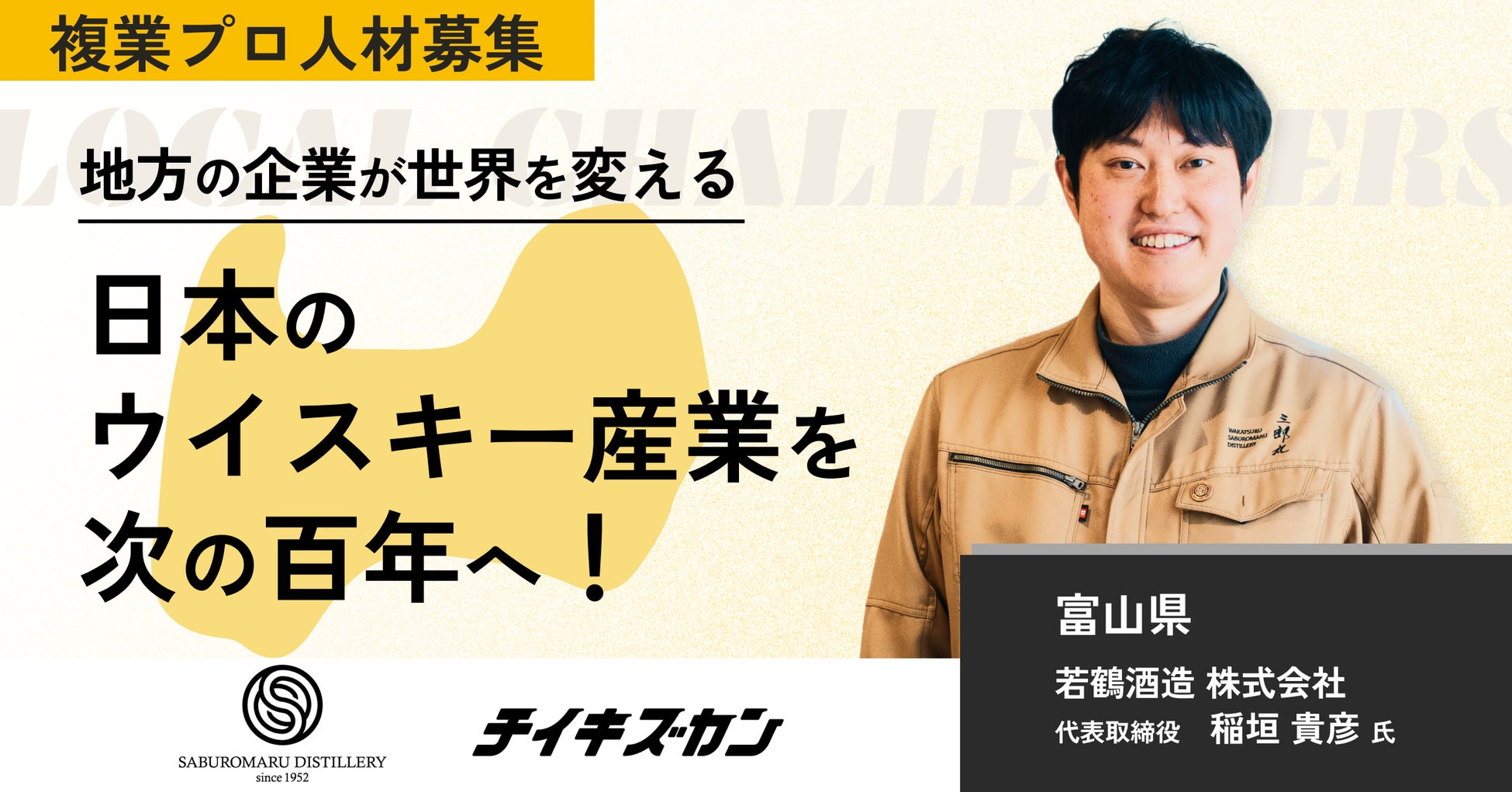 このたび、富山県砺波市に本社を構える若鶴酒造株式会社が、ウイスキー業界のさらなる発展と、地域に根ざした持続可能な文化創出の強化に向けて、「チイキズカン」を通じ、都市部の複業プロ人材募集を開始いたしました。