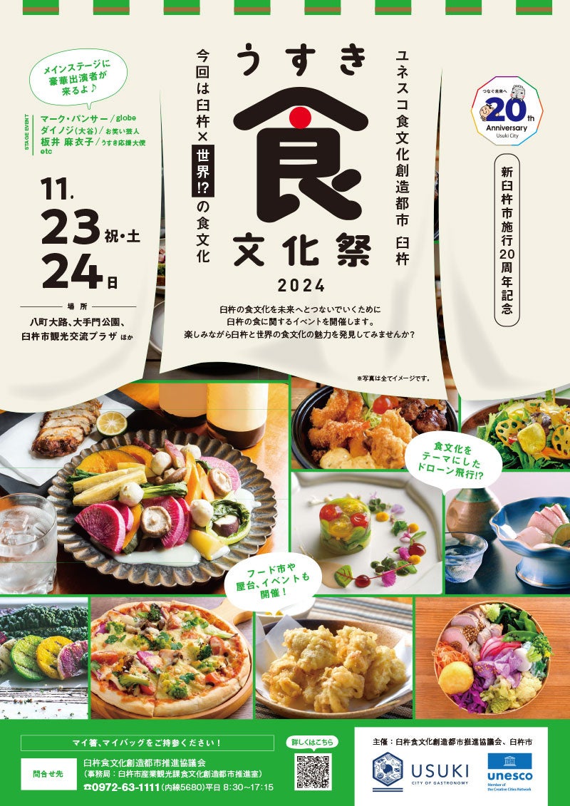 新臼杵市施行20周年を記念した「うすき食文化祭2024」は、ユネスコ創造都市ネットワークの食文化分野に加盟(国内では二都市のみ)している臼杵の食文化を未来へとつないでいくために、臼杵の食と地域文化と最新テクノロジーを融合した2日間にわたる大規模イベントです。