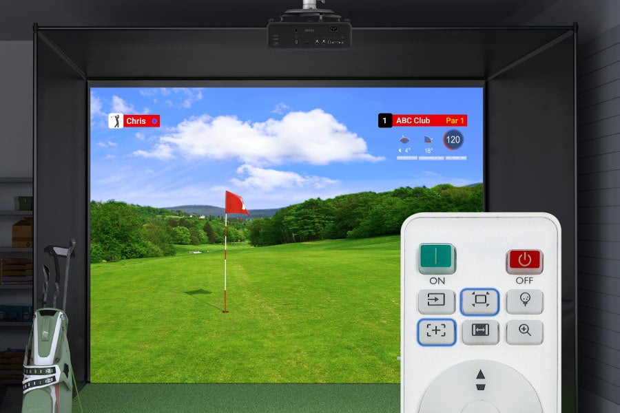 BenQ製品として初めて「自動ぴったり補正機能」を搭載し、これまでは手動調整を必要としていた、フォーカス、角合わせ、縦台形補正をリモコン1つで瞬時に自動調整ができるようになり、初期設置の利便性が格段に向上しました。さらに付属するリモコンはゴルフ仕様となっており、全6種の調整機能用のボタンがまとまっているため、リモコンの操作だけでインドアゴルフ構築の全ての調整を完結することが可能になりました。