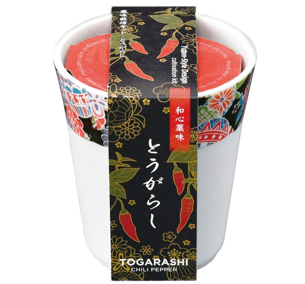 美しい器とともに、ピリッとした刺激と彩りを育てる、贈り物にもおすすめの栽培キットです。