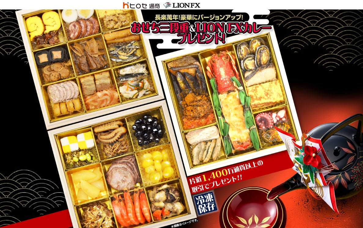 長楽萬年!豪華にバージョンアップ!おせち三段重&LION FXカレープレゼントキャンペーン!を実施!