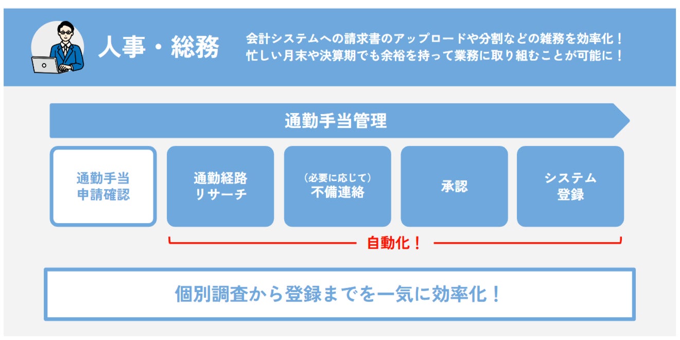 経理・会計部門や人事・総務部門など、バックオフィスの業務も自動化が可能です。