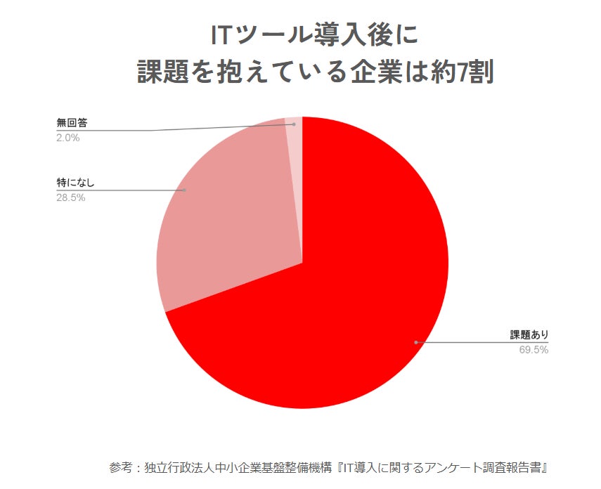 ツールやシステムを導入したものの、以下のような課題を抱える企業が約7割に上るというデータがあります。