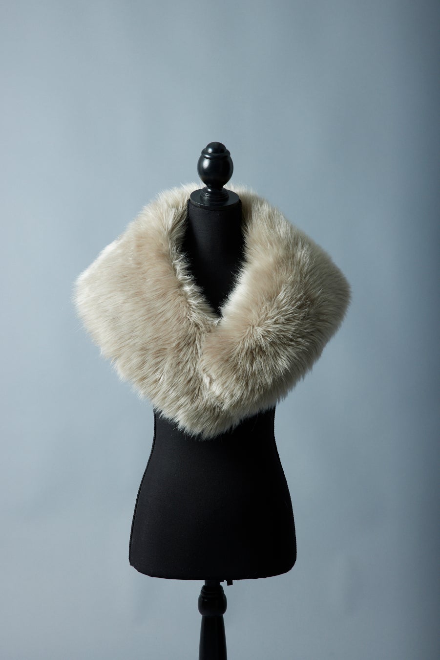国内工場で丁寧に仕立てられたショールは、立体感と存在感を備え、天然毛皮に匹敵する保温性も実現しています。