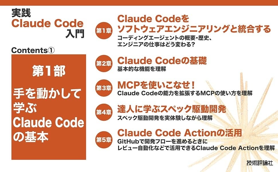 第1部ではClaude Codeをゼロから利用できるようになるためのハンズオンを中心に、MCPの活用やスペック駆動開発の実践までを扱います。