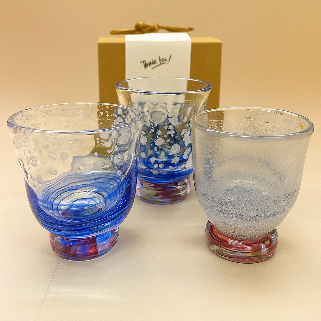 達成者には、 昭和蔵オリジナルぐい吞みby glass Art Blue moon 1個と、