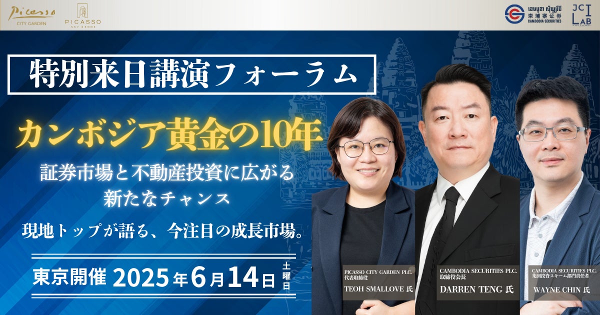 JCI LAB CO., LTD(本社:プノンペン、代表:ヤン・ファン)は、2025年6月14日(土)に東京・紀尾井カンファレンスにて開催される特別来日講演フォーラム「カンボジア黄金の10年 〜証券市場と不動産投資に広がる新たなチャンス〜」に共催いたします。