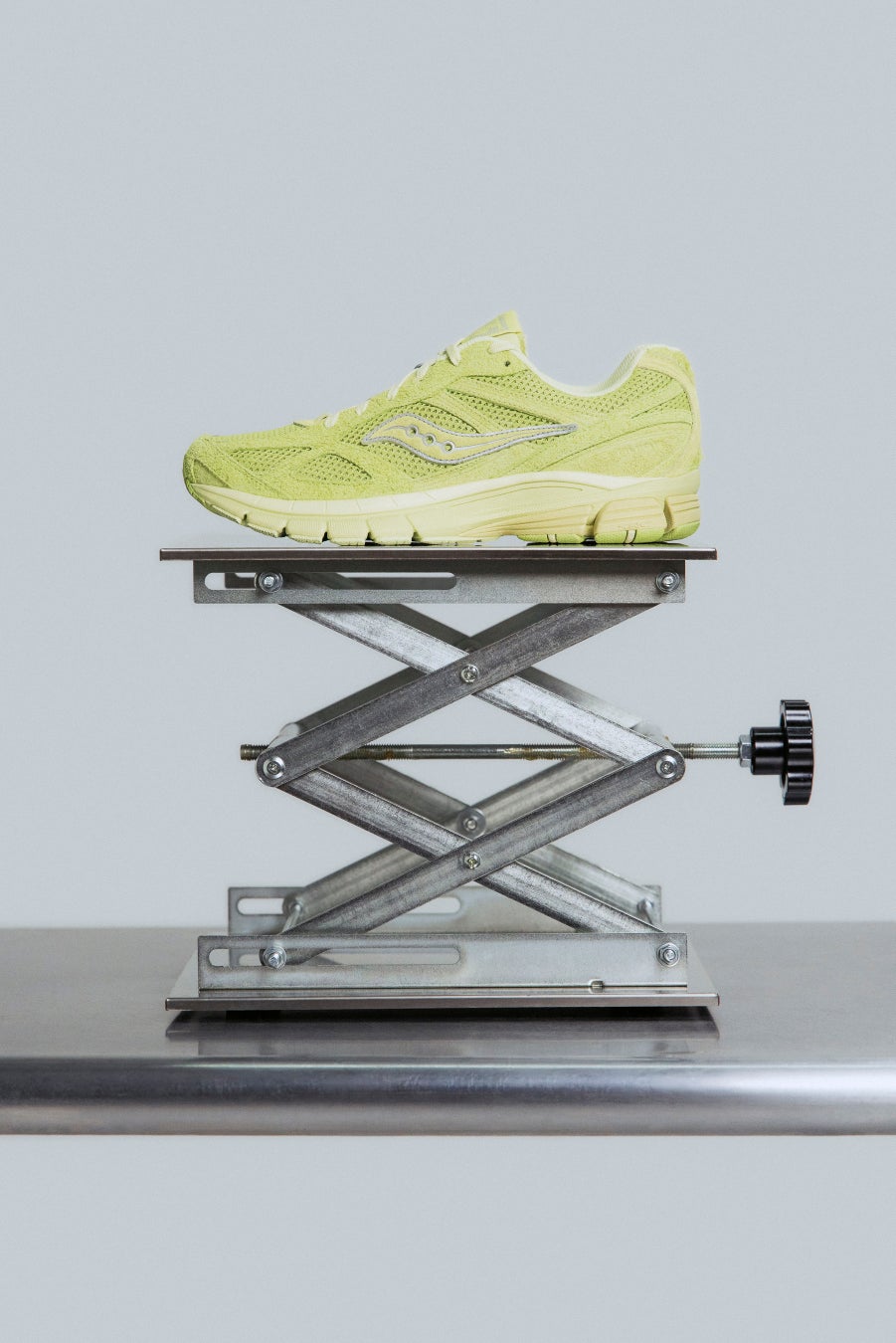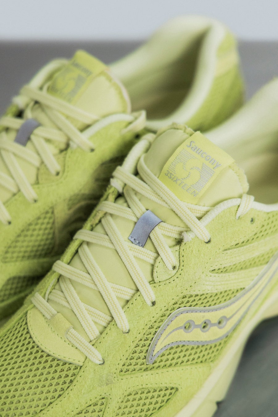 本作は、優れた安定性とクッション性で知られる2000年代のランニングシューズ「Guide 7」をベースに、3sixteenが得意とする素材使いとエイジング”の哲学を組み合わせて再解釈したモデルです。カラーは、落ち着いたグレートーンに差し色を効かせた「Graphite(グラファイト)」と、レトロな蛍光色を思わせるイエローグリーンの「Lime(ライム)」の2色展開。