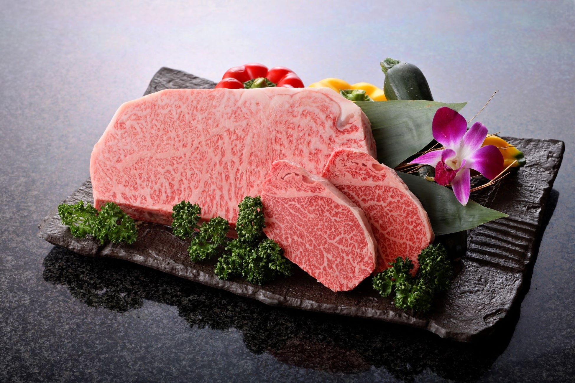 霜降り肉でジューシーでとろける食感のロースを鉄板焼ステーキでご賞味ください。