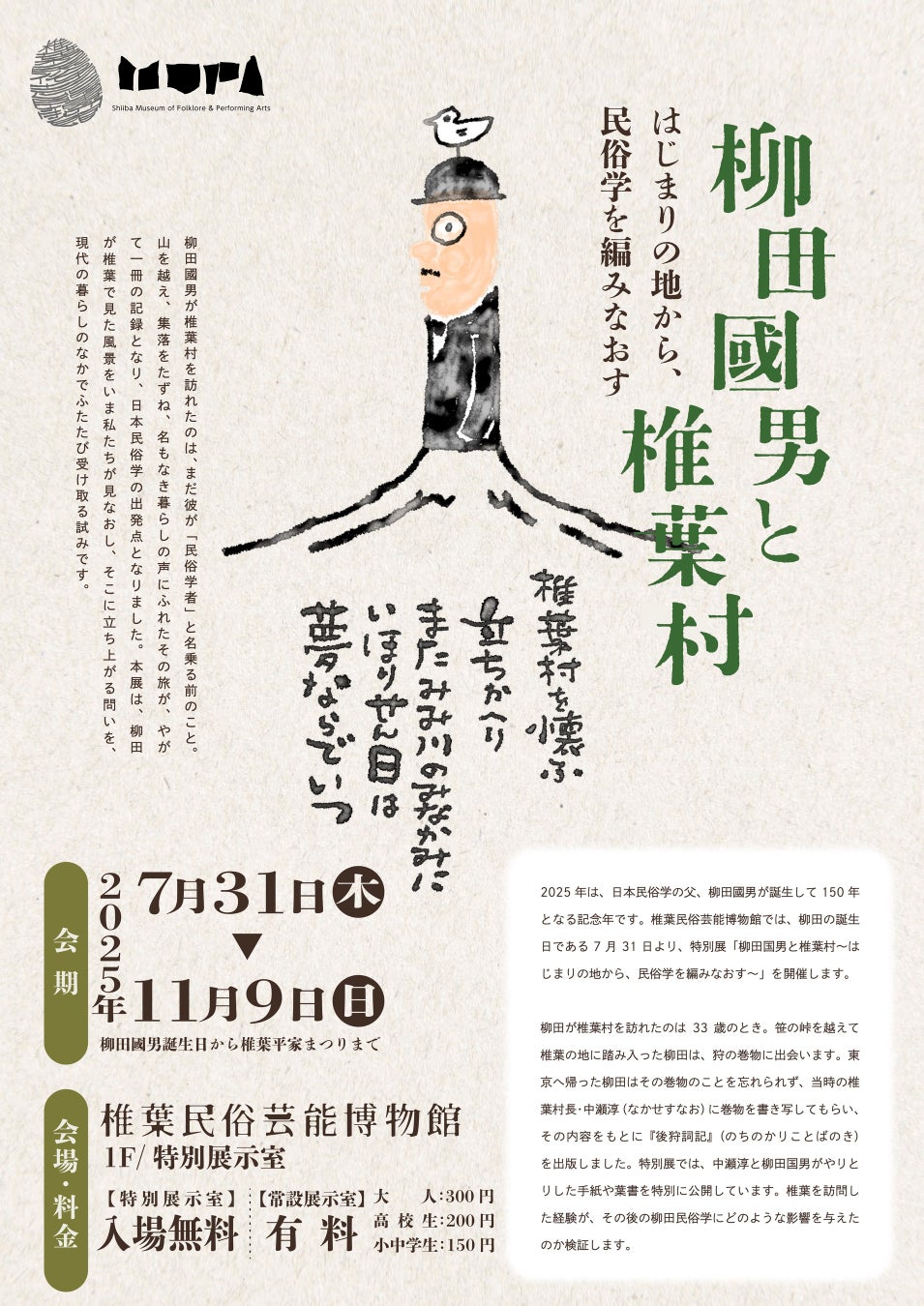 柳田國男生誕150年の節目に、椎葉民俗芸能博物館が会期7/31–11/9の特別展やオンライン連続講座・デジタルアーカイブの公開へ