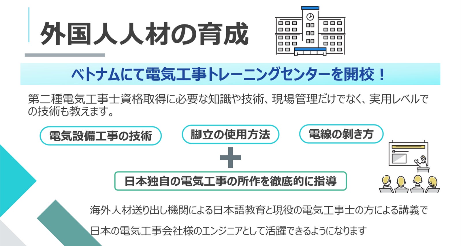 ベトナムに電気工事トレーニングセンターで特定技能・技術ビザ外国人の育成・支援に注力