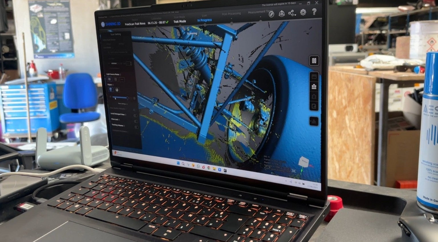 これを実現するには、空力最適化、カスタム部品の設計、そしてチーム間の連携のために、ボディとシャーシの高精度かつ高解像度の3Dモデルが不可欠でした。そこで、SHINING 3Dの3Dスキャン技術が導入されました。