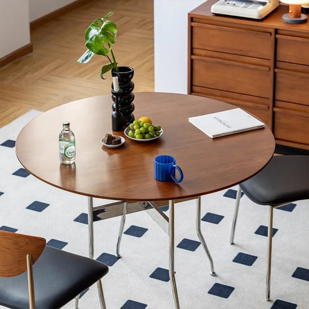 ツゲ材 ステンレス脚木製ラウンドテーブル