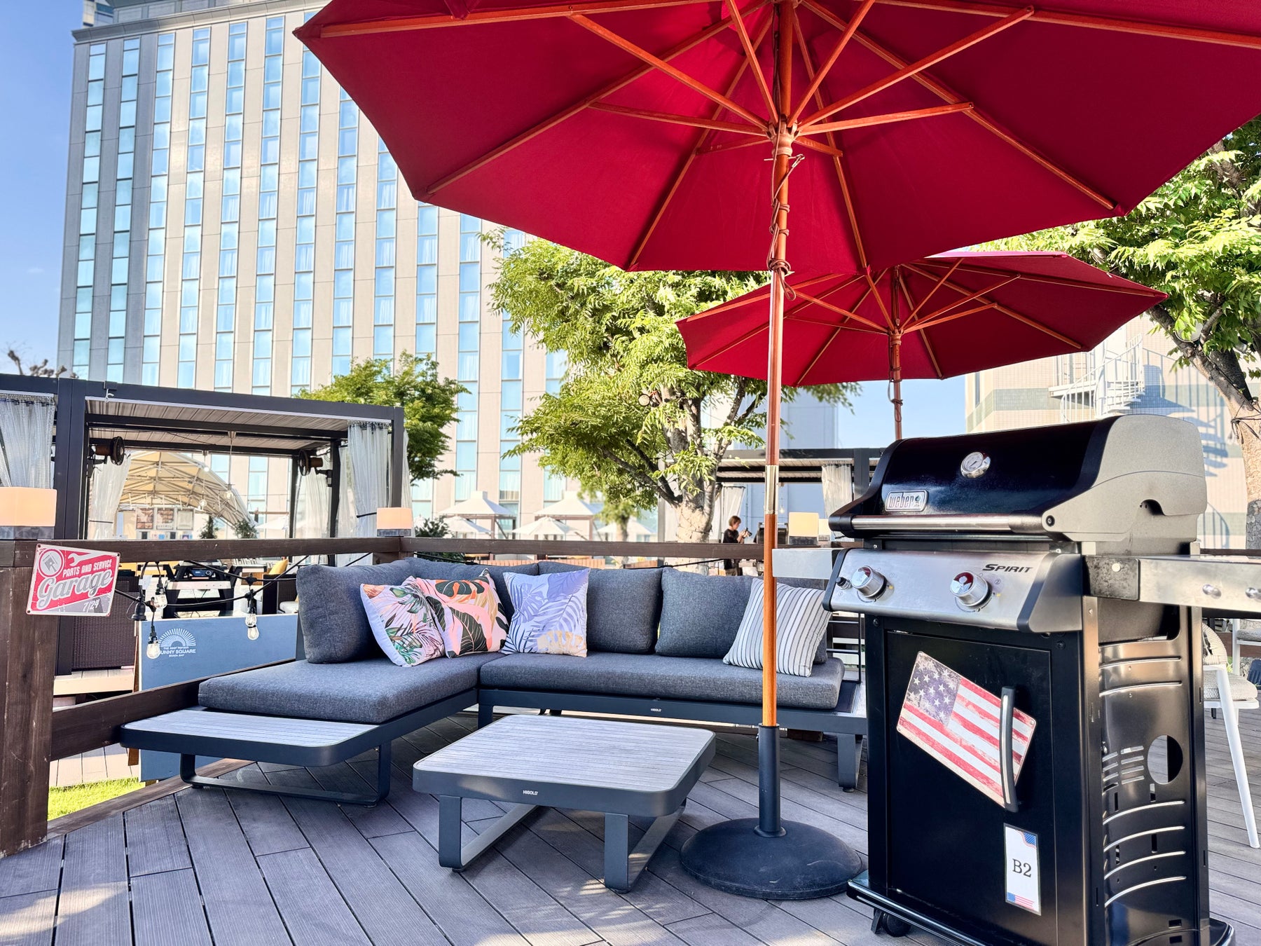 「THE ROOF TOP BBQ SUNNY SQUARE(サニースクエア) OSAKA BAY」は、世界各国のパーティー文化を融合させたアウトドアリビング体験を提供するBBQエリアです。『WORLD BBQ ~世界のアウトドア空間を一つの場所に~』をコンセプトに、アメリカ、オーストラリア、ブラジル、日本の4つの国をテーマにしたエリアで、それぞれの国の特色を反映したBBQグリルを使用し、グローバルなBBQメニューをお楽しみいただけます。