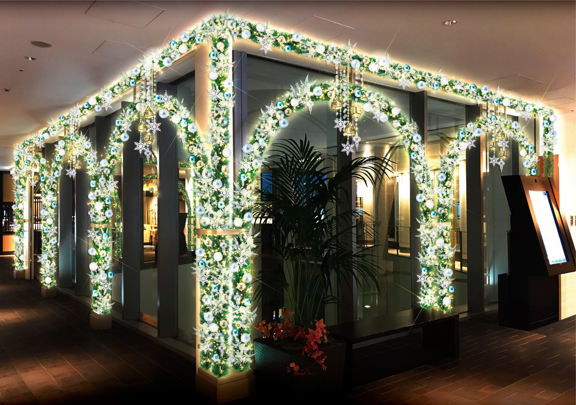 グランフロント大阪ショップ&レストランでは、飲食フロアを訪れるお客さまに特別なひとときを楽しんでいただけるよう、南館7F・8Fのガラス面のアーチにオーロラをイメージしたオーナメントを用いたイルミネーションを施すほか、館内各所のクリスマスツリーを設置して、皆さまをお迎えします。