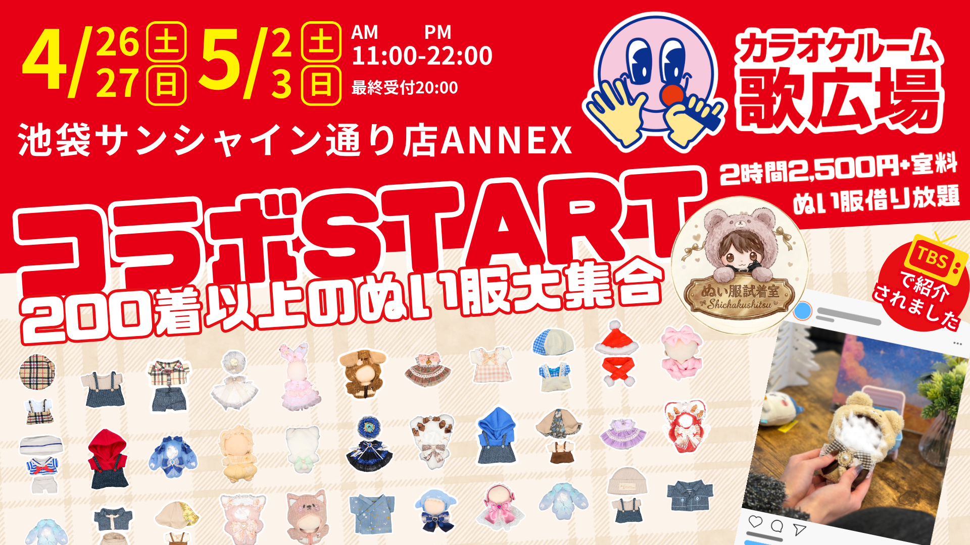 池袋サンシャイン通り店ANNEXにて200着以上のぬい服が試着、撮影し放題!