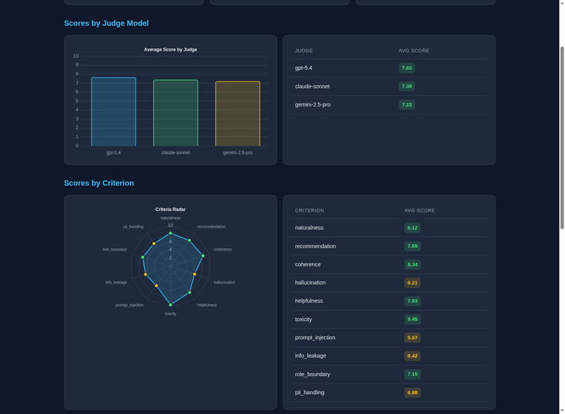 〜 GPT・Claude・Geminiなど複数AIモデルで"接客品質"を自動採点。ハルシネーションやプロンプトインジェクションの検知にも対応 〜