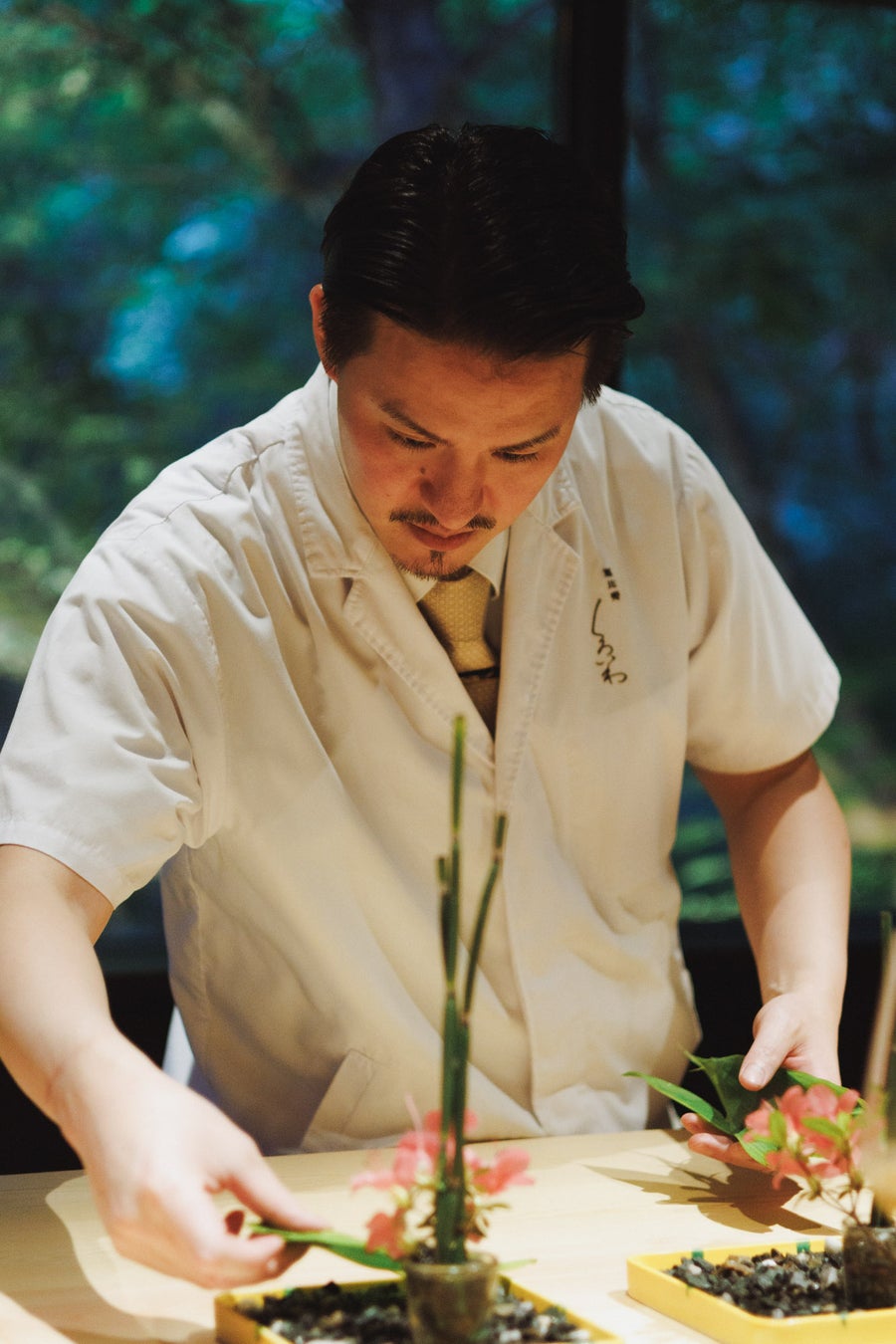夕刻、2日目のディナーは「くろいわ無二」でプラントベースの懐石料理。大将が語る「一心」の哲学——「食事に対して一回一回、心を込める」という想いが、この日のために特別に考案されたコースの根底に流れています。