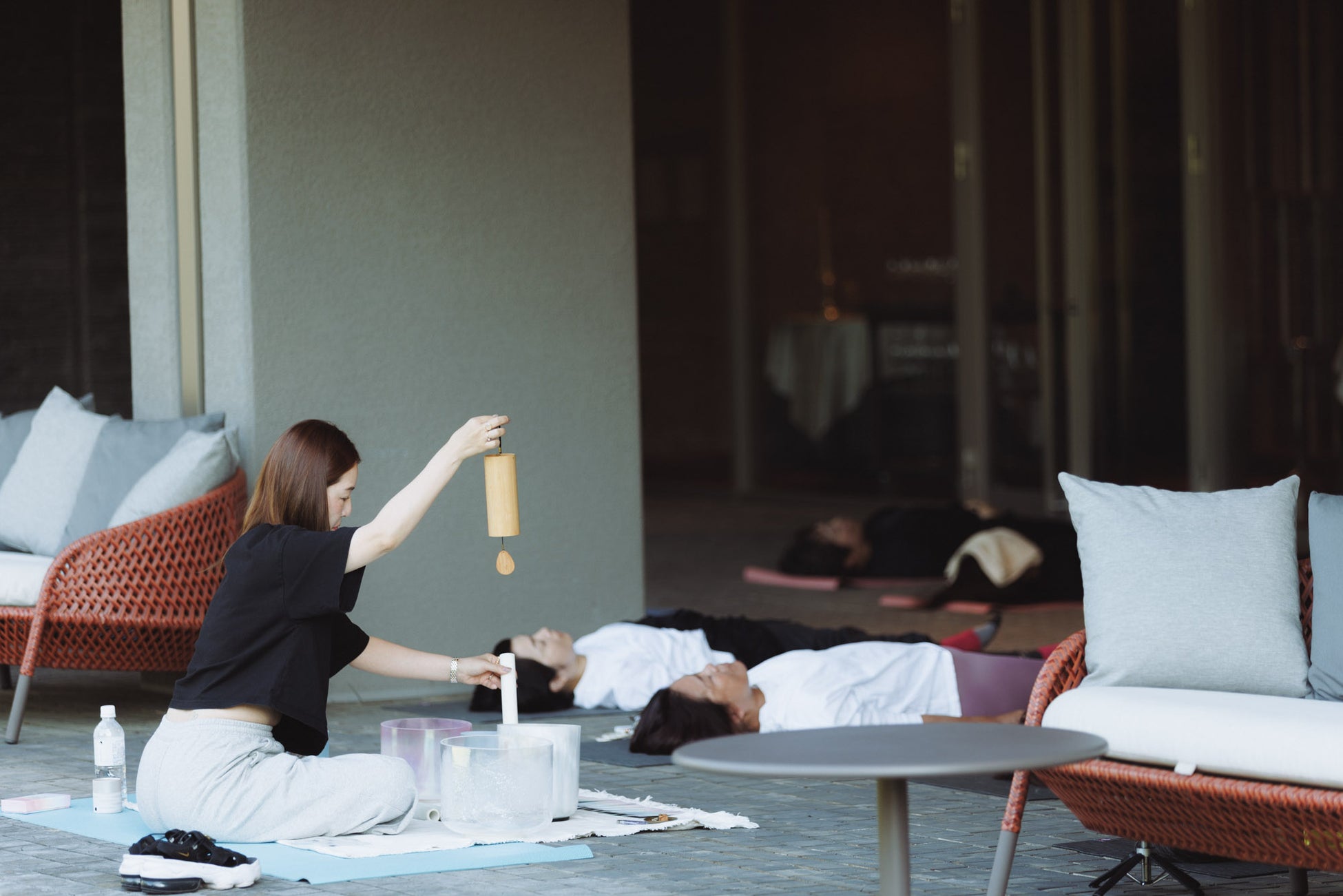 3日目の朝は、クリスタルボールを使ったサウンドヒーリングで穏やかに始まりました。参加者たちはリラックスしながら、空間に響く美しい音色に身を委ねていきます。