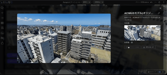 3Dマップ機能とは、住所を設定するだけで、プロジェクト周辺の実在の建物・街並み・地形がフォトリアリスティックな3Dモデルとして空間上に投影される機能です。ACIMUSでは、パソコン・スマートフォン・タブレットでもWebブラウザ上で3Dマップの表示が可能です。