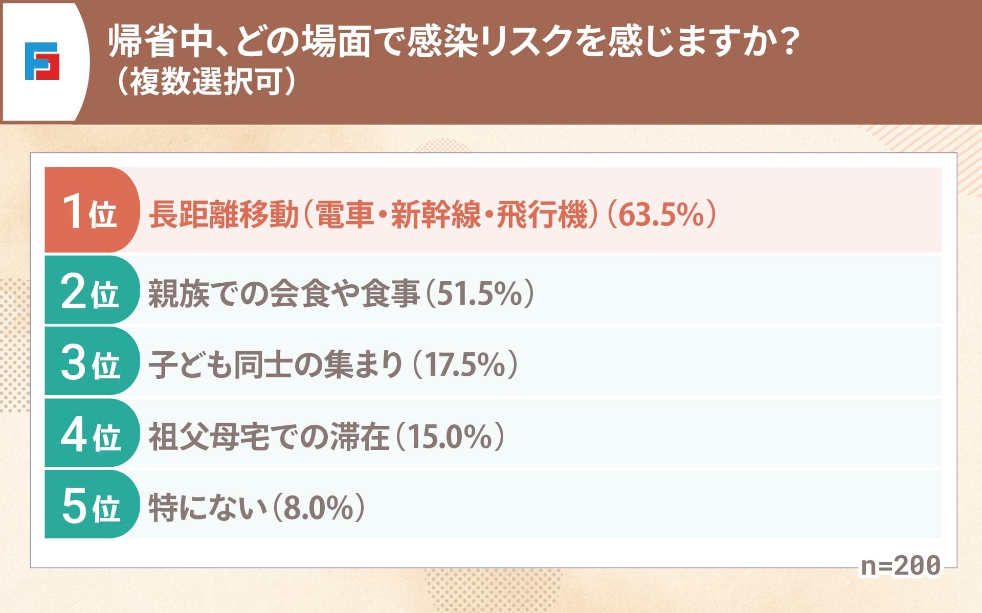 帰省中で最も感染リスクを感じるのは「長距離移動」