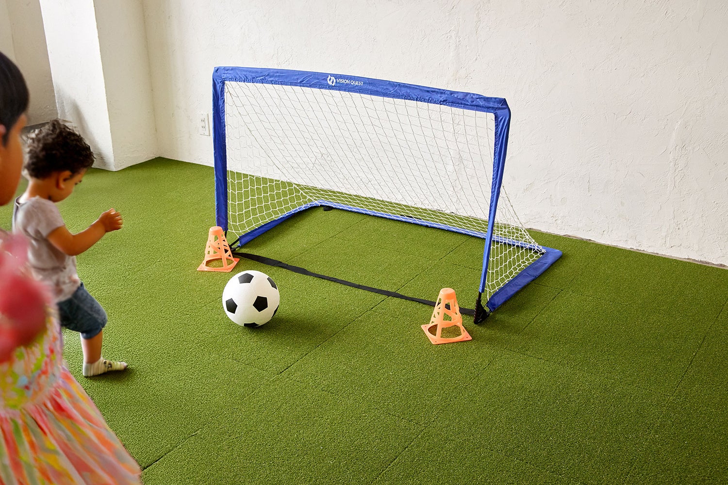 そのような環境下においては、空き教室や体育館の一部に室内用人工芝を導入することで、天候や気温に左右されない運動環境の整備も可能です。
