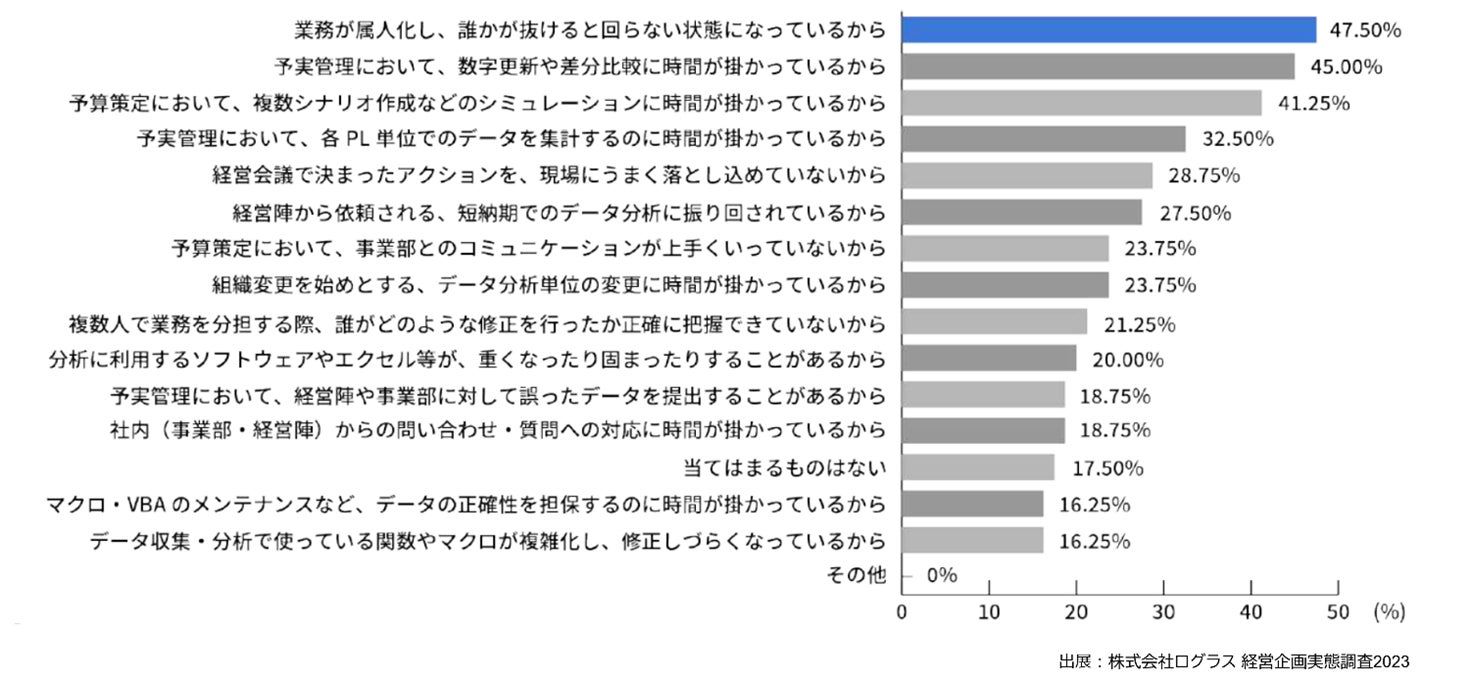 ※ 株式会社ログラス 経営企画実態調査2023より(インターネット調査、回答:80件、調査対象:CFO/経営企画/社長室所属の方)