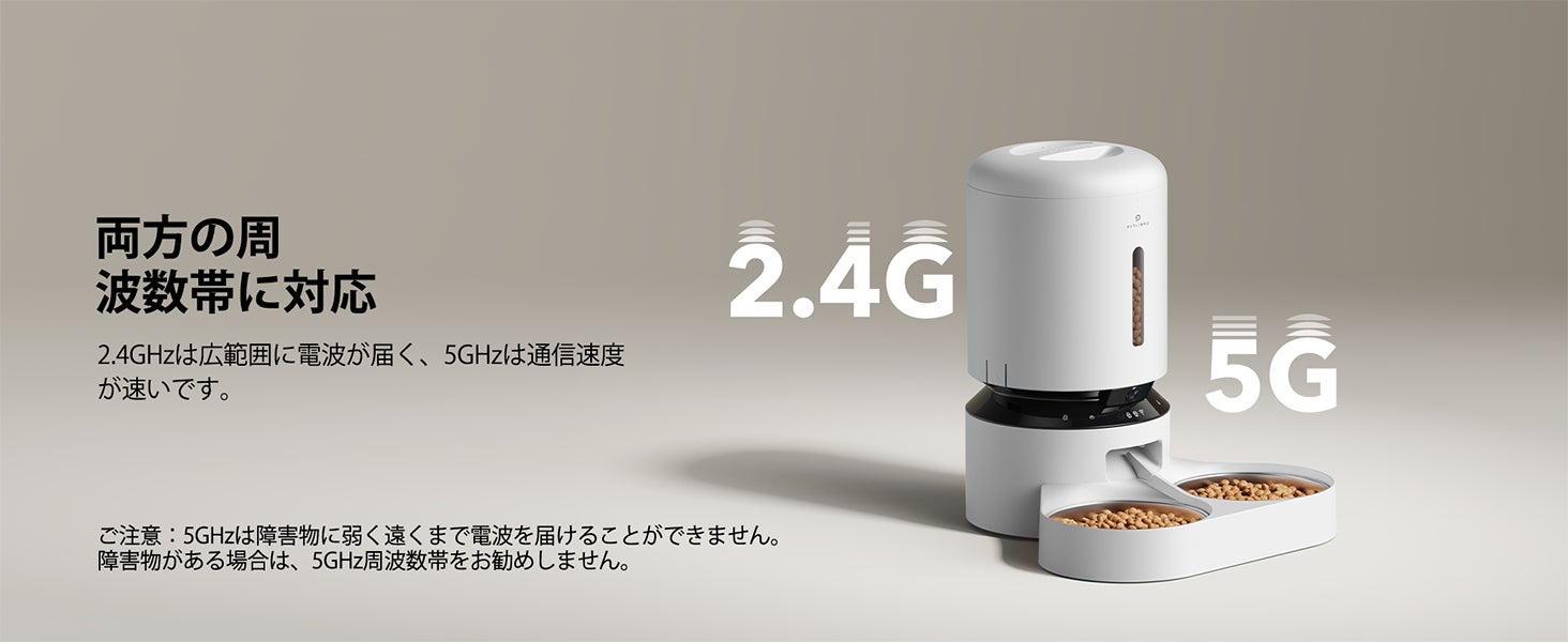 このスマート給餌器は5GHzと2.4GHzのWiFiネットワークをサポートしており、いつでもどこでもPETLIBRO Lite(旧版)またはPETLIBROアプリ(新版)を使用して、iOSおよびAndroidデバイスでペットの食事をプログラムおよび監視できます。*