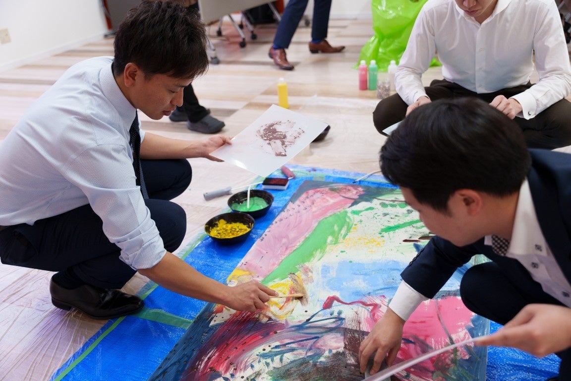 こうした課題に対して、明治産業ではこれまでに内定者研修やチームビルディング研修、SDGs研修などにアートを取り入れ、以下のような効果を実感してきました。