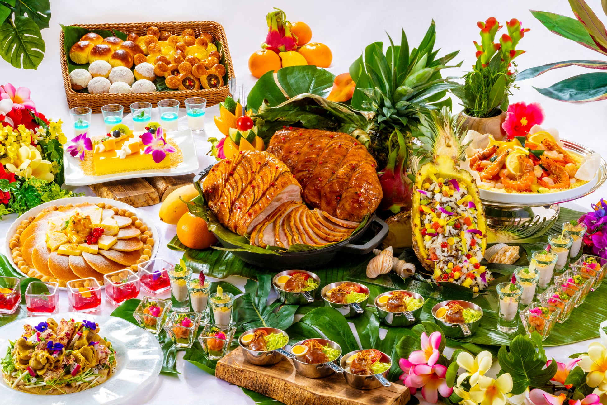 2025年7月1日~9月15日の期間、ハワイアンスタイルのブッフェ料理やスペシャルドリンクをご提供します。スモークサーモンポキやガーリックシュリンプ、ロコモコをはじめとしたハワイアンスタイルの料理や、夏らしいスペシャルドリンクをお楽しみいただけます。さらに、ディズニーアンバサダーホテル宿泊者のみご予約いただけるブレックファストでは、ミッキーマウスに加え、ディズニー映画『リロ&スティッチ』に登場するスティッチがテーブルを訪れます。