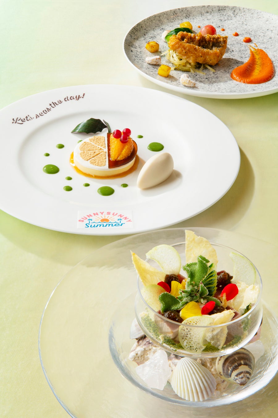 ディズニーアンバサダー(R)ホテルと東京ディズニーランド(R)ホテルのレストランでは、今年の夏も期間限定でシェフが腕によりをかけた料理の数々やスペシャルドリンクをご堪能いただけます。パークの雰囲気やディズニー映画の世界観を感じながら、大切な人と特別なひとときをお楽しみください。