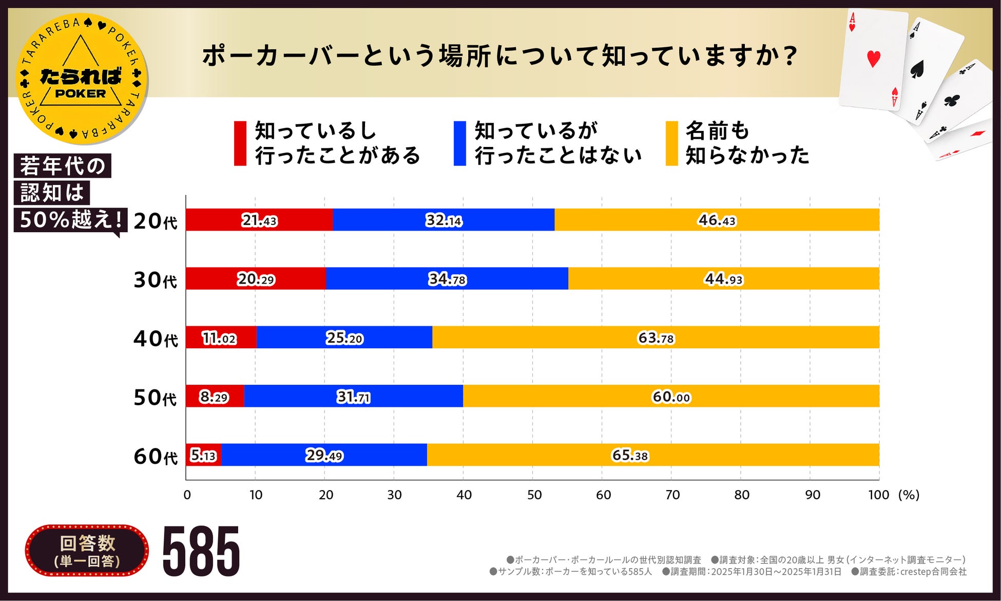 「ポーカーバーという場所について知っているか」世代別に認知度アンケート調査を行いました。