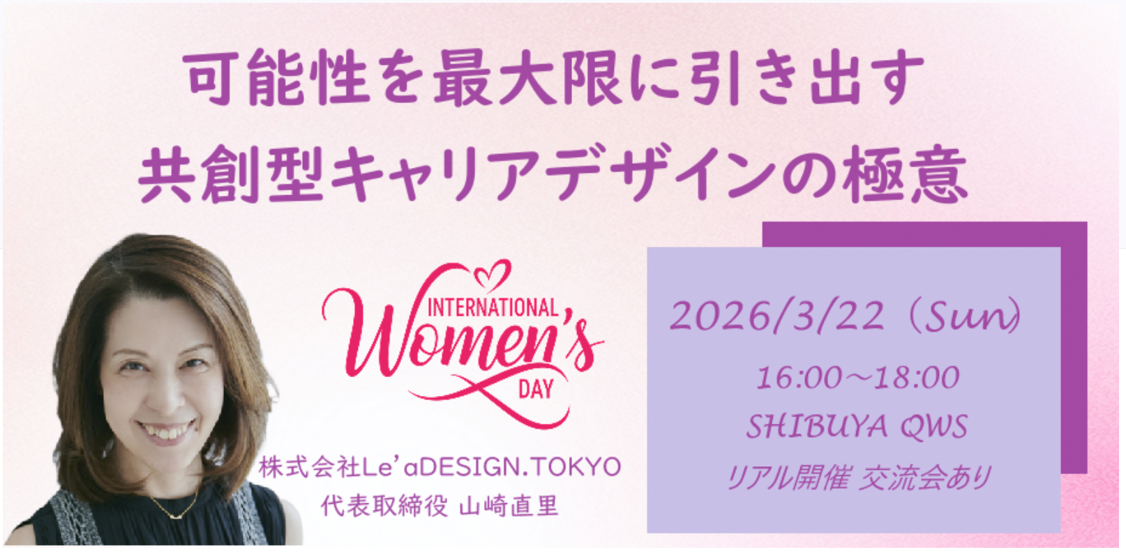 プロジェクト支援事業を展開する株式会社Le’a DESIGN.TOKYO(以下、LDT 本社:東京都世田谷区、代表取締役:山崎直里)は、すべての女性が自分らしく輝ける未来をデザインできる社会を目指し、2026年3月22日(日)16:00~18:00、SHIBUYA QWS(東京・渋谷)にて『共創型キャリアデザインセミナー』を開催いたします。