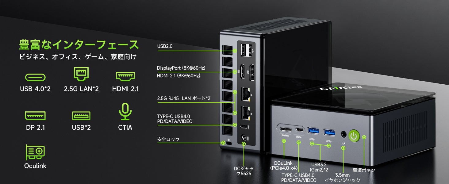 GMKtec NUCBOX M7は、その高性能な処理能力と優れたセキュリティ機能により、ゲーミングやビジネス環境での利用に最適です。コンパクトでありながら、あらゆる用途に対応できるこのミニPCは、まさに最強の選択肢です。