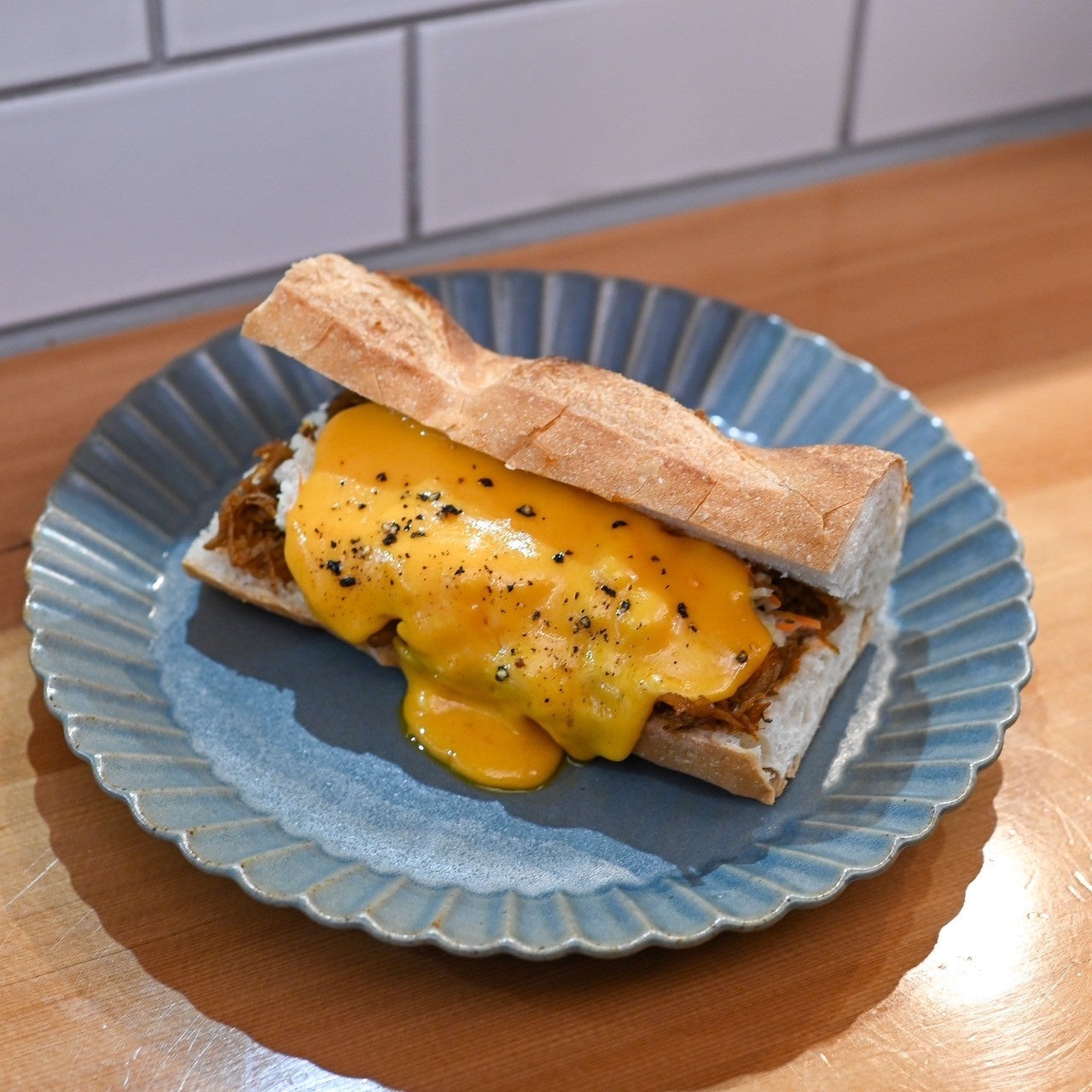 サンドイッチの具材に合わせてバゲットの種類も変えています。お客様から注文を頂いてからトースターでリベイクして、具材を調理して出来立ての温かい状態でバゲットサンドイッチを提供します。