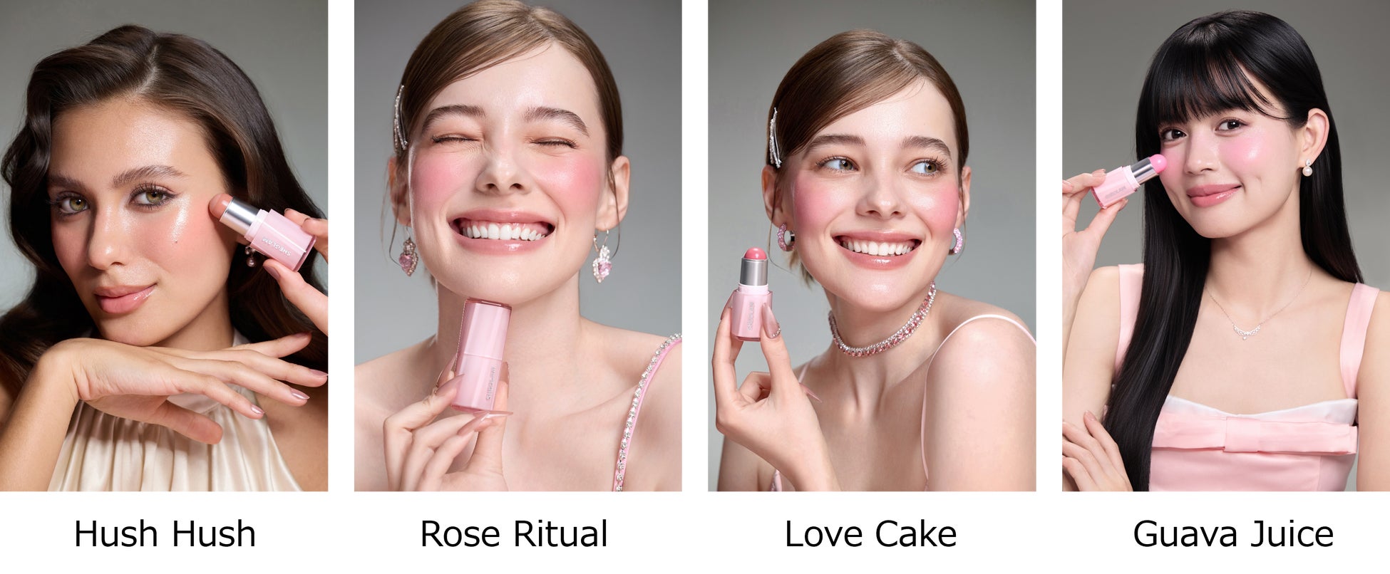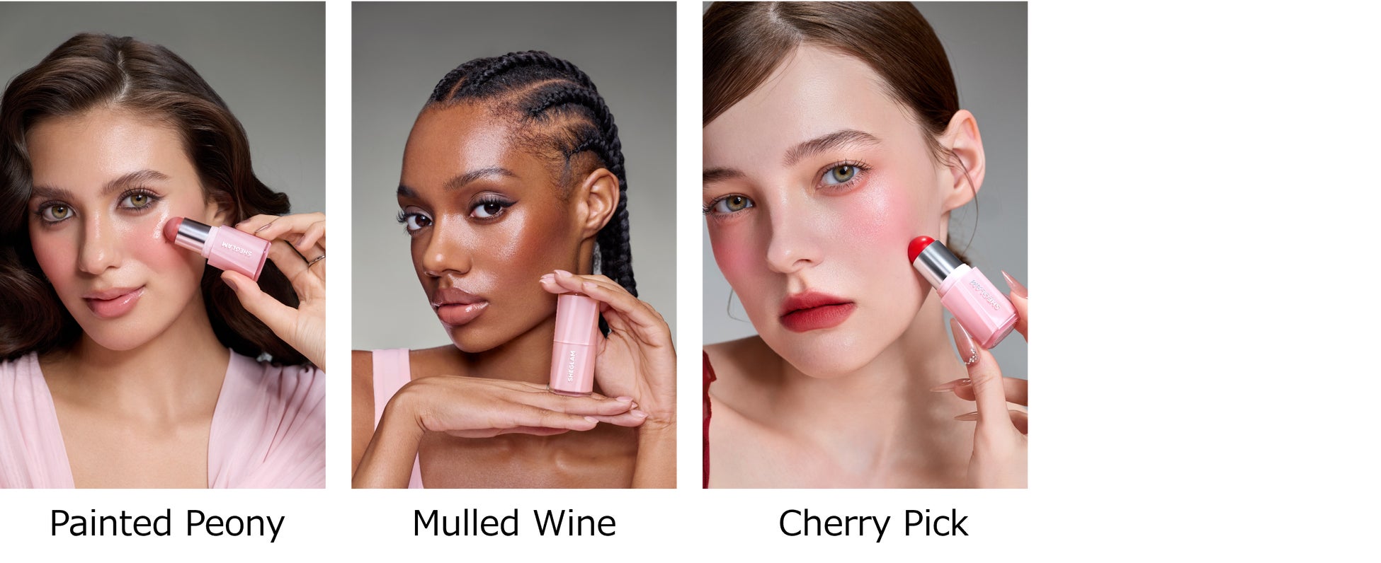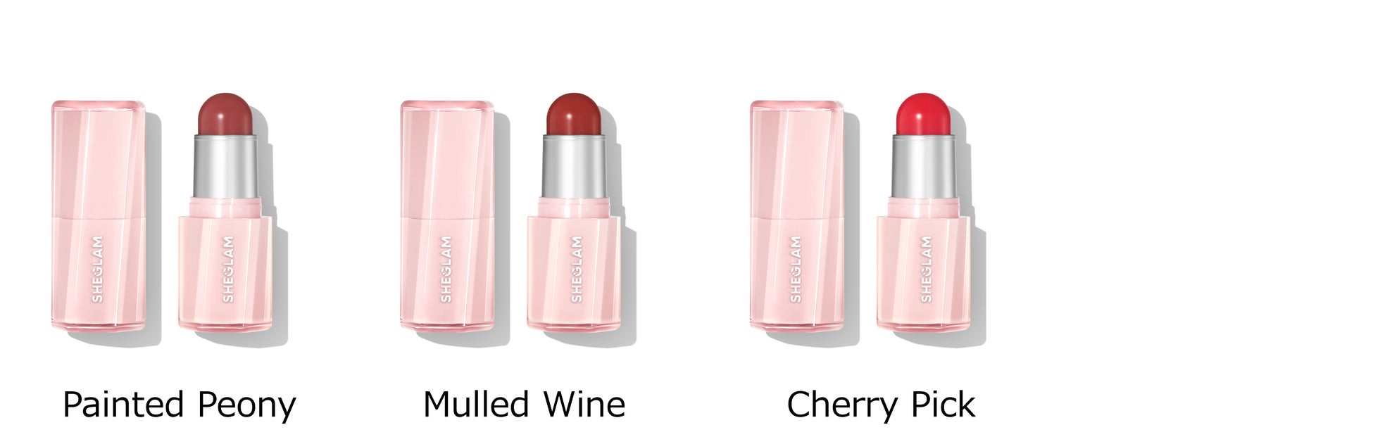 カラー展開は7色で、その中の3色には、SHEGLAMの人気リキッドチーク「Color Bloom Liquid Blush」シリーズでファンも多い「Love Cake」、「Rose Ritual」、「Hush Hush」がラインナップ。その他にも、メイクのポイントになること間違いない鮮やかながらも落ち着いた雰囲気のある「Mulled Wine」や、くすみを飛ばし上気したような肌を演出できる華やかなカラーの「Cherry Pick」など、肌なじみの良いカラーから、メイクが引き締まるアクセントカラーまで幅広く展開しています。