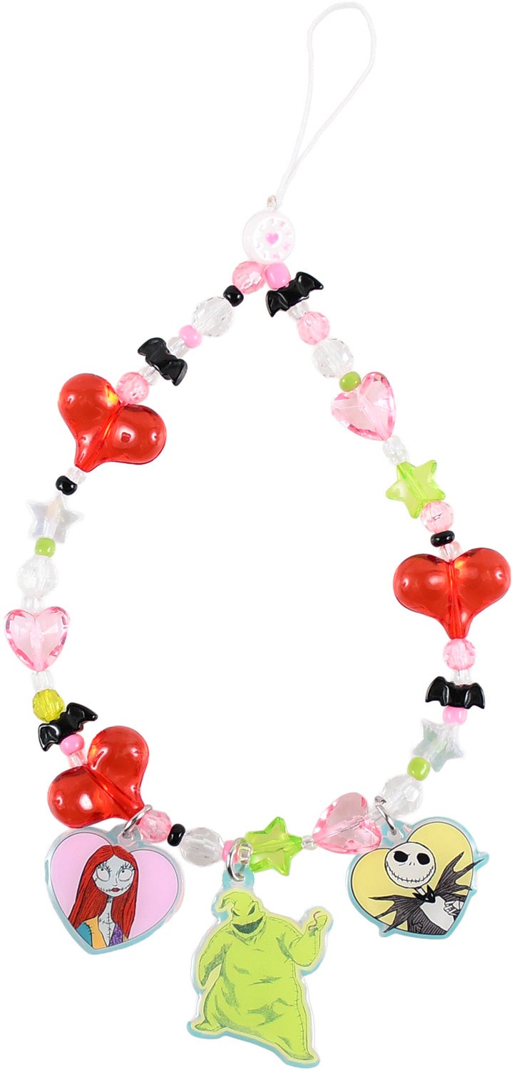 ジャック、サリー、ウギー・ブギーのチャームがポイントのデザイン。スマホアクセだけでなくバッグチャームとしてもおすすめ。