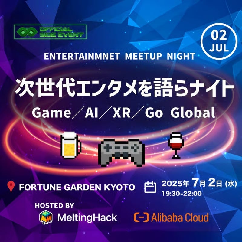 Alibaba Cloudがメインスポンサーを務めるIVS期間中の公式サイドイベント。ゲーム、AITuber/VTuber、AIアニメ・漫画など、最前線のプレイヤーが集い交流するミートアップです。