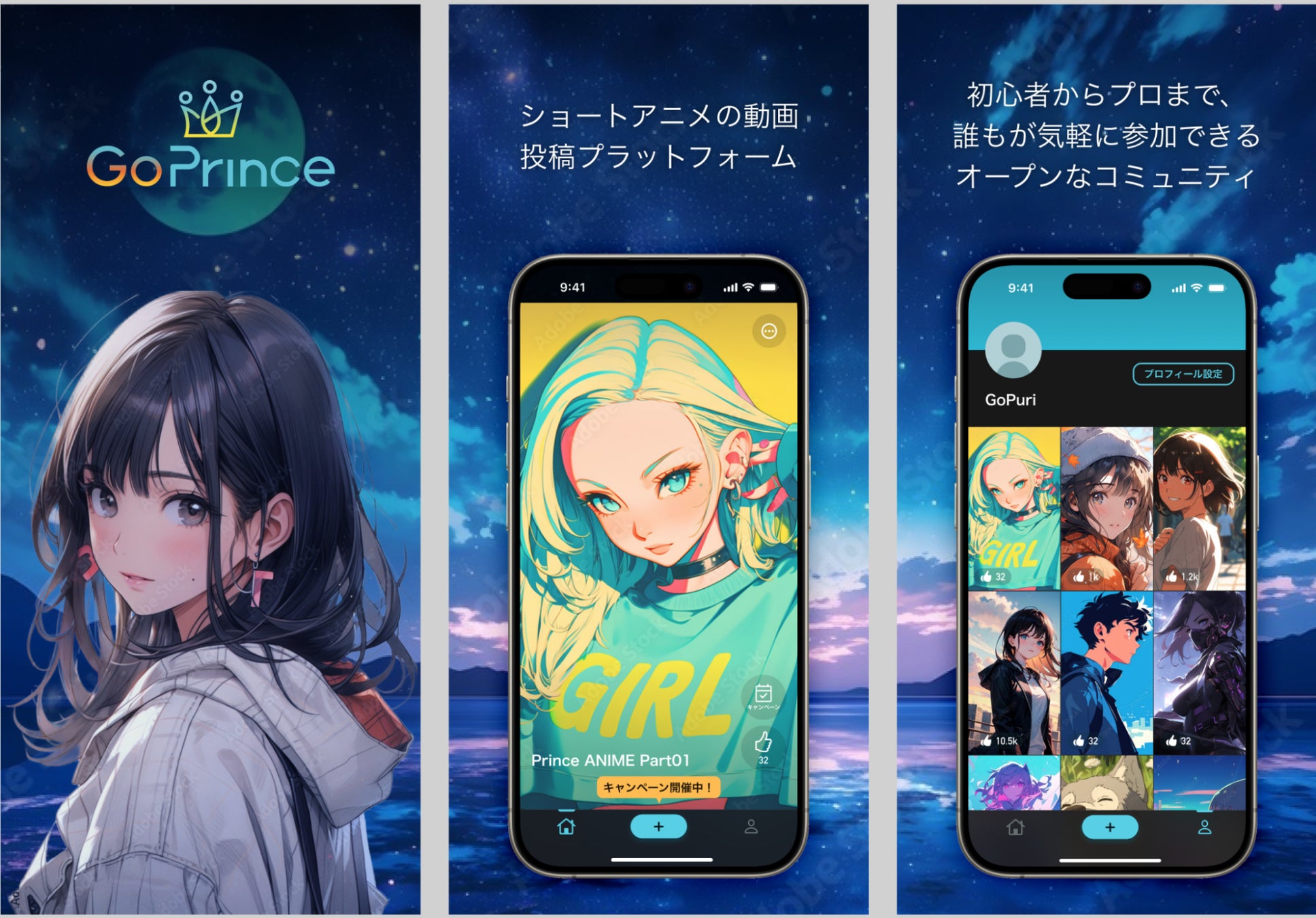 「GoPrince」は、誰でもアニメを作って投稿できるモバイル向けプラットフォームです。モデルやモーションなどのアセットと生成AIツールを活用し、ストーリー付きアニメを簡単に制作できます。投稿作品はブロックチェーンでオリジナル性が保証され、安心して創作に取り組めます。2025年夏にオープンβ開始予定です。
