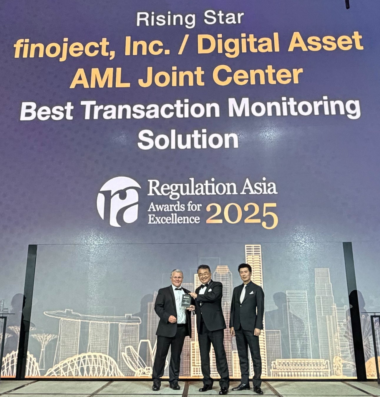 finoject, Inc. (Head Office: Shibuya-ku, Tokyo; CEO: Kimihiro Mine) is pleased to announce that it has received the Rising Star award for Best Transaction Monitoring Solution at the Regulation Asia Awards for Excellence 2025, one of the most prestigious recognitions in the Asia-Pacific financial and regulatory sectors.