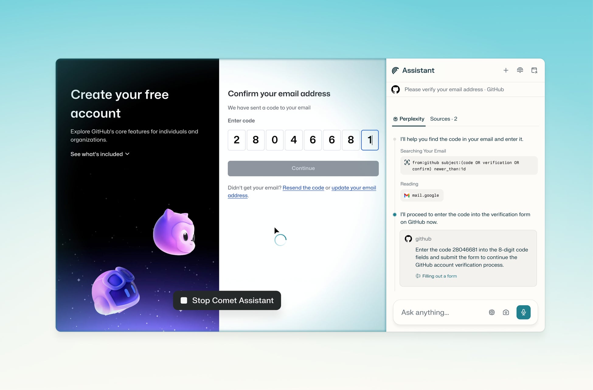 ブラウザ上にAIアシスタント「Comet Assistant」が常駐し、タブをシームレスに横断して情報要約、ミーティング予約、メール送信、ショッピングなどを実行できます。