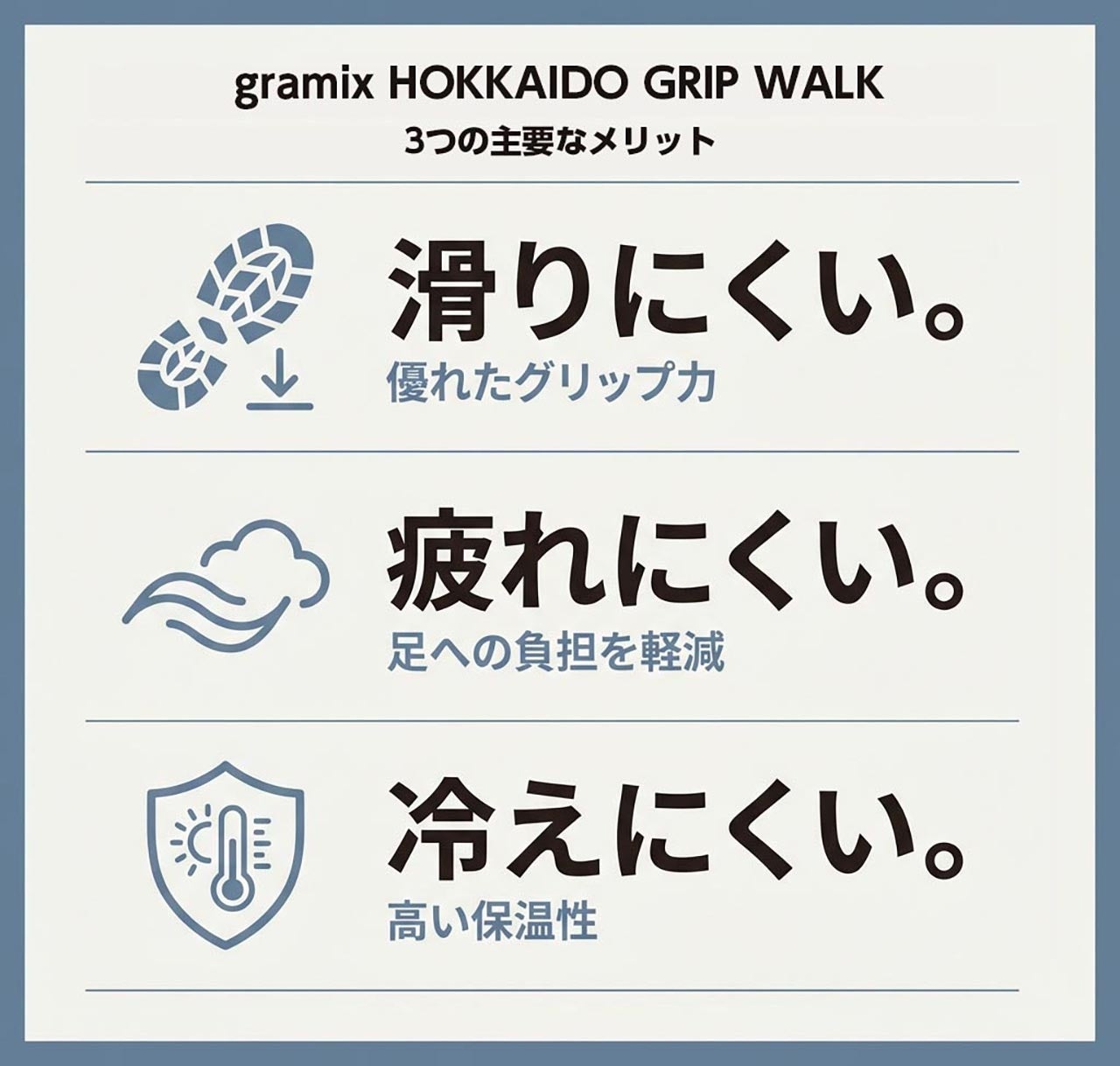北海道での生活では、雪道や凍結路面、雪解けによる濡れた路面など、足元に注意を払う場面が日常的に存在する。