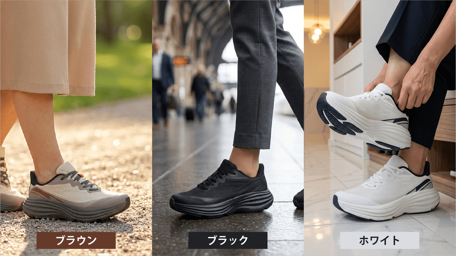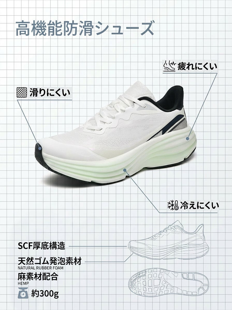 厚底シューズはこれまで、ランニングなどの競技用途を中心に進化してきたが、本製品は「普通の日を安全に歩く」という視点から、日常用途に特化して再設計されている。
