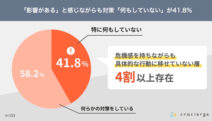 調査結果②:「電気代に影響がある」と感じている人の41.8%が、対策「何もしていない」