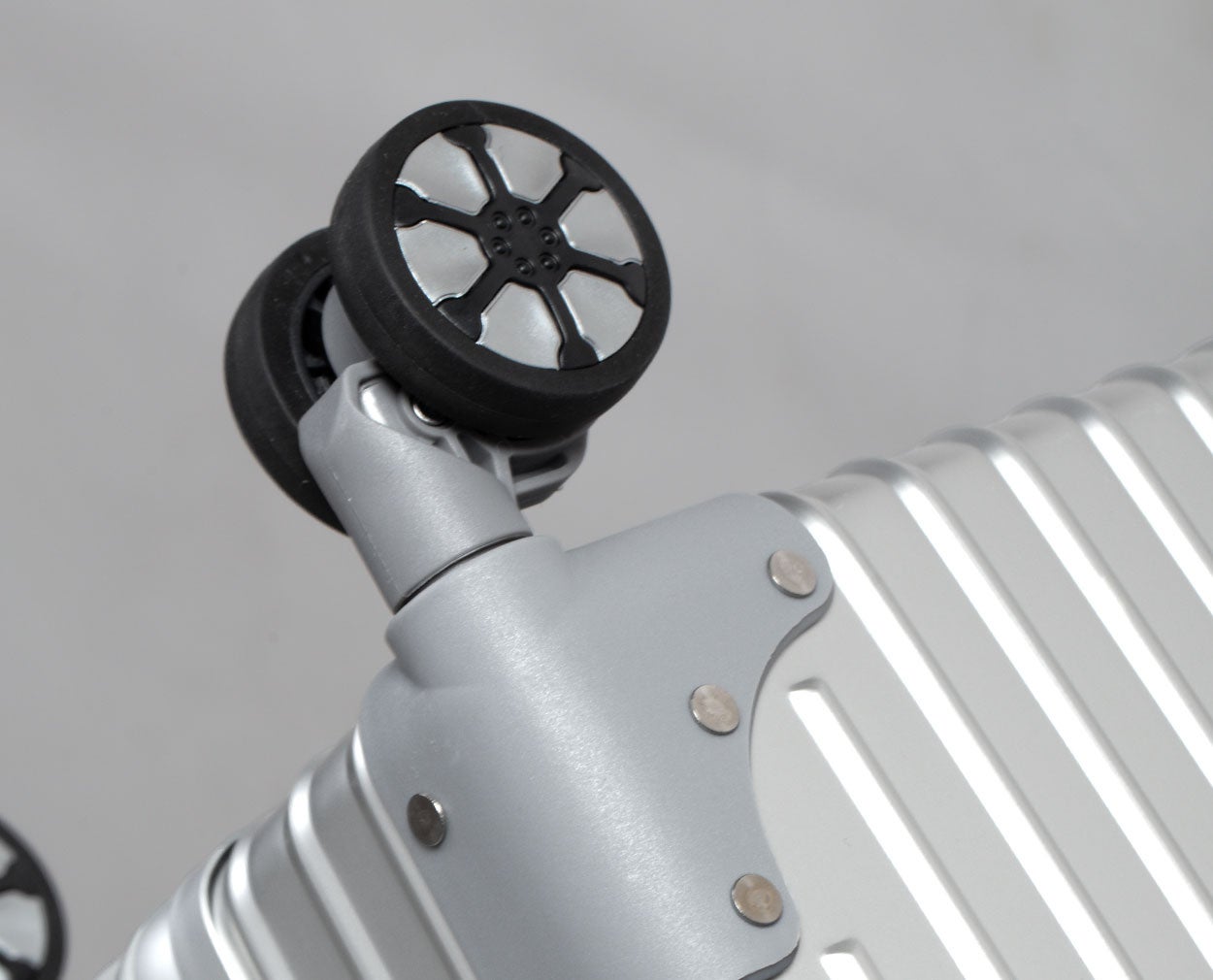 機内持ち込み対応サイズから長期旅行向けの大型サイズまで、用途に応じた幅広いサイズ展開も特長です。360度回転するスムーズな多輪キャスターとTSA認定ロックを標準装備。