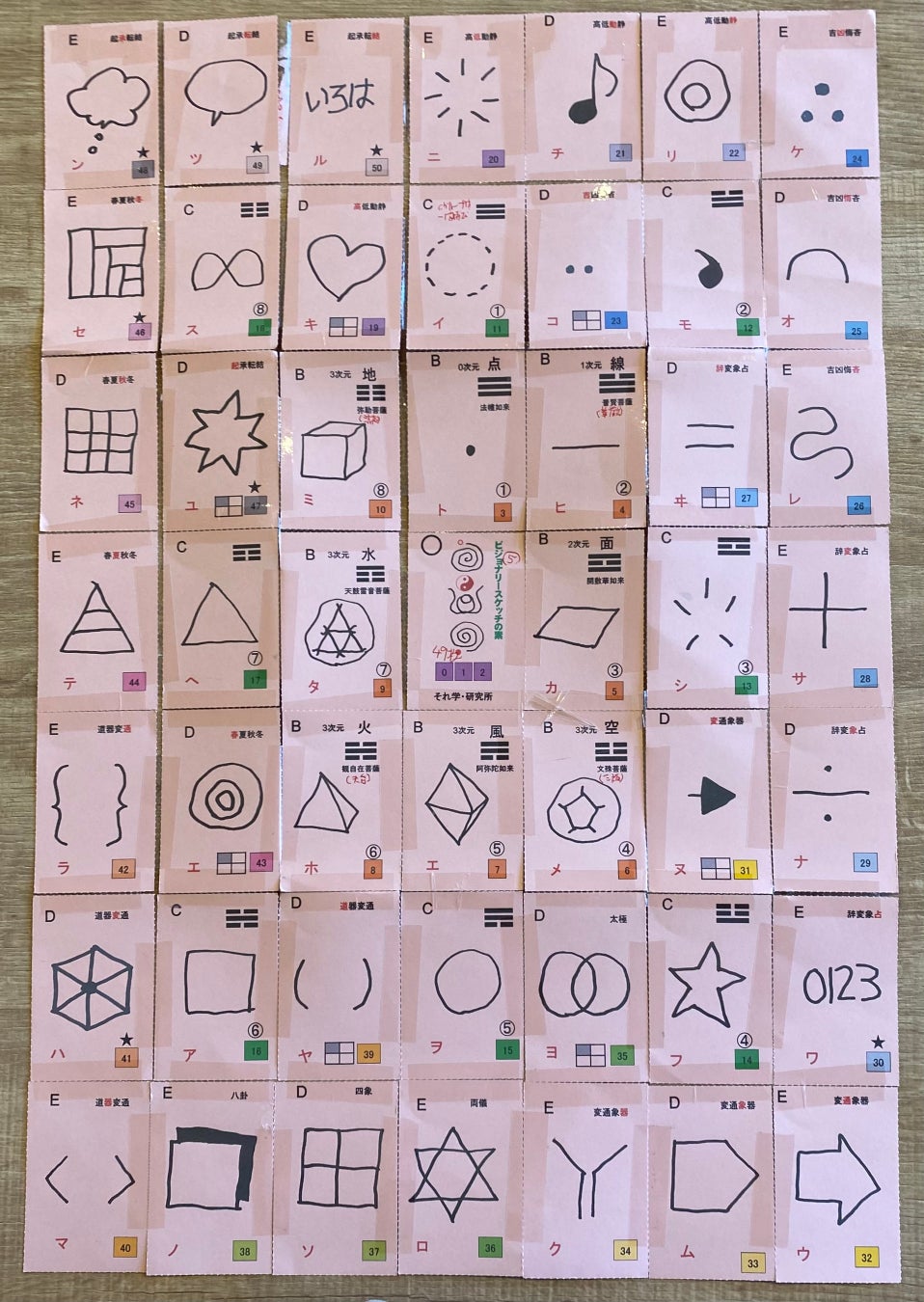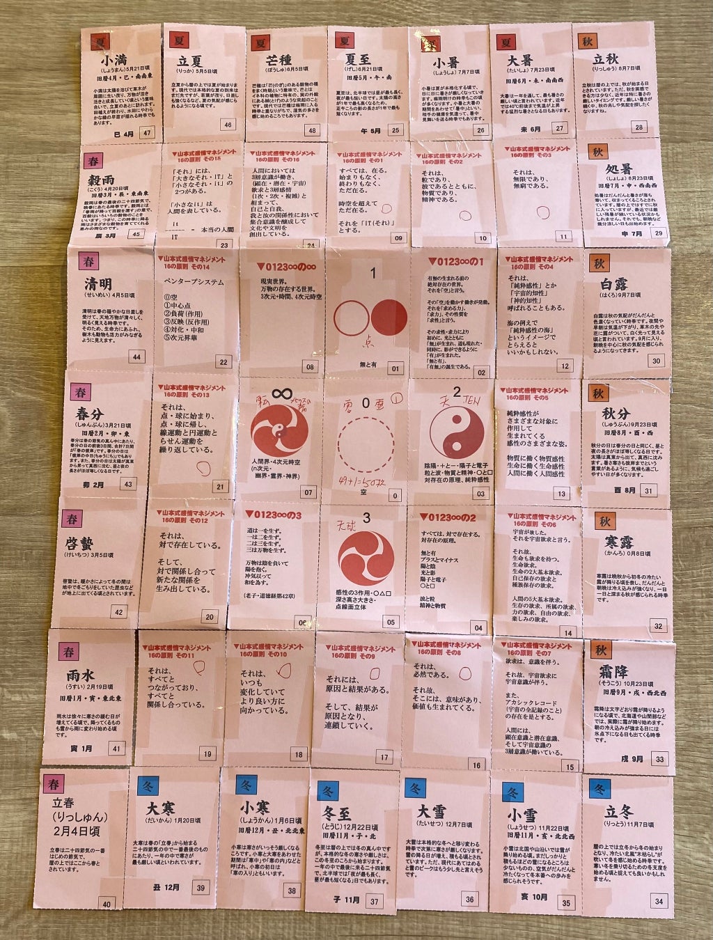 山本式感性型図形要素をフトマニフレームに配置したマップと個々のカードです。