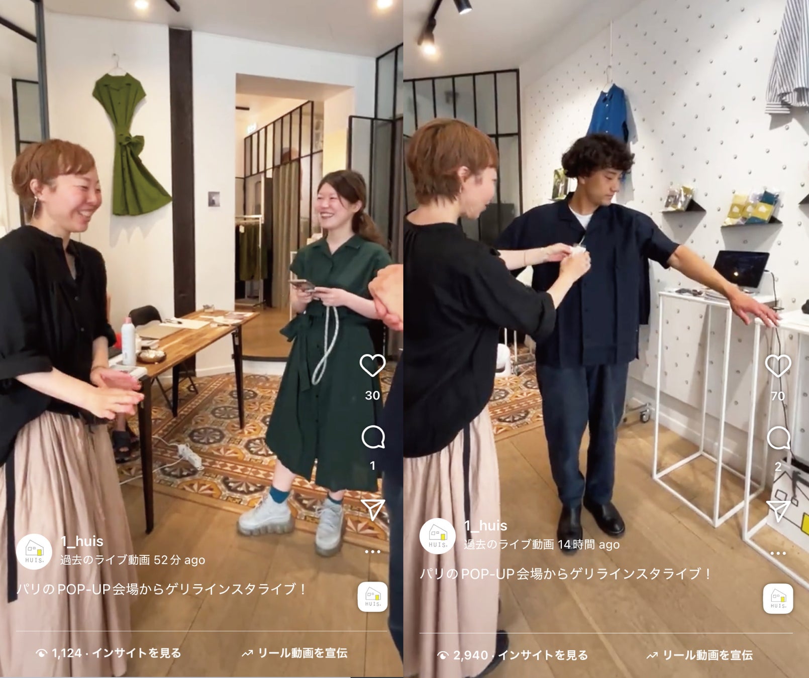 期間中は日本から赴く3名のスタッフが販売に立ち接客販売を行っているほか、インスタライブなどを活用して現地の様子を約44,000人のHUISフォロワー向けにリアルタイム配信しています。