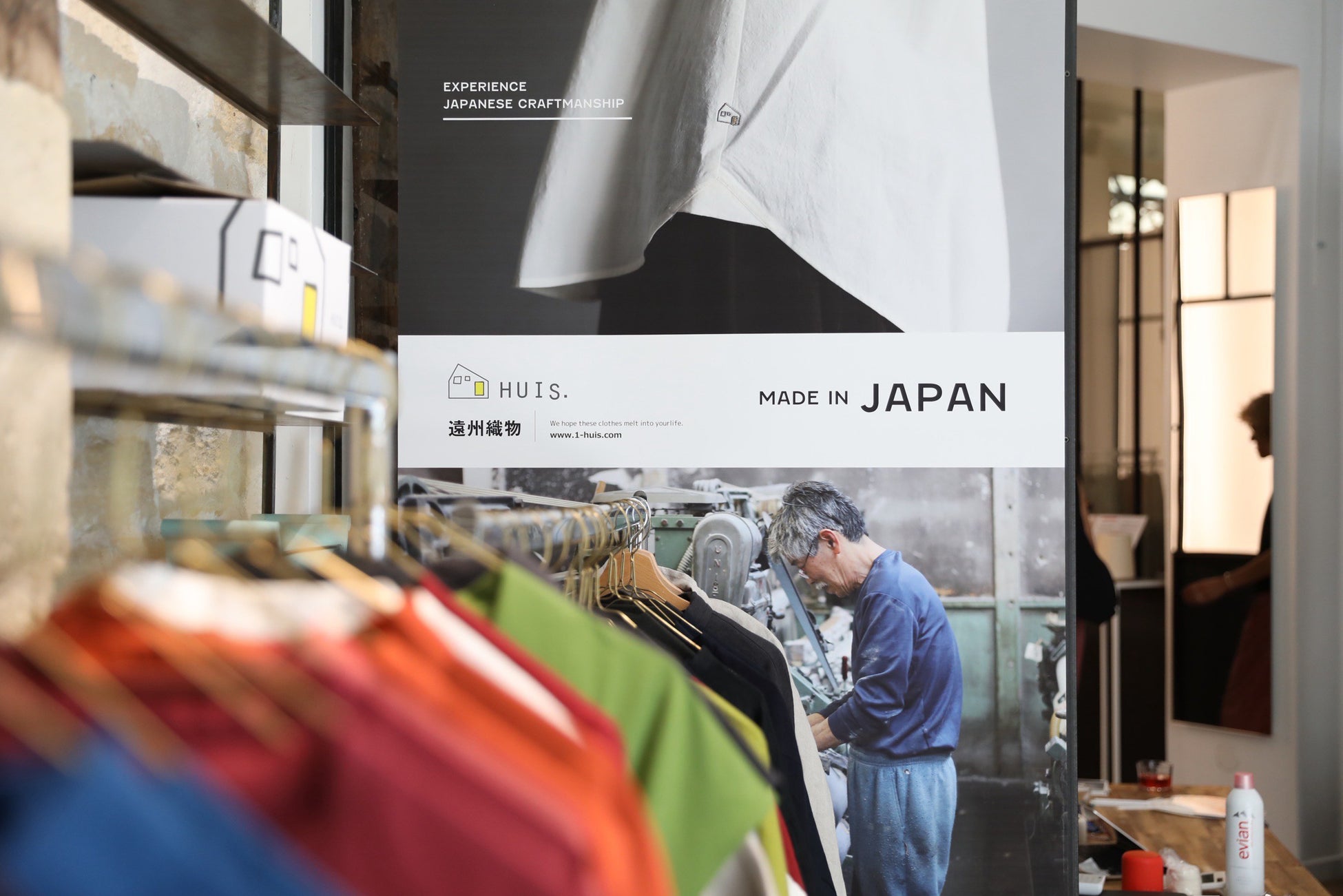 HUISが最初にフランス・パリでの商品販売を行なったのは一昨年の2023年です。「浜松市」の事業において、遠州織物を総合的にPRするイベントがパリにて開催され、その際HUISも商品を提供して参加させていただいた結果、来場者からの反応が良好で手応えを感じたことから、翌2024年秋に店舗型のイベント会場を貸切り、HUISとして単独のPOPUPを開催いたしました。